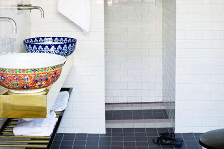 L’ensemble des aménagements réussi, bien qu’il ait été totalement recomposé, à faire “authentique” sans être glauque. La gamme de couleurs choisies, intenses mais légèrement rompues (c’est-à-dire dans lesquelles on a ajouté une petite touche de noir), y participe certainement beaucoup.