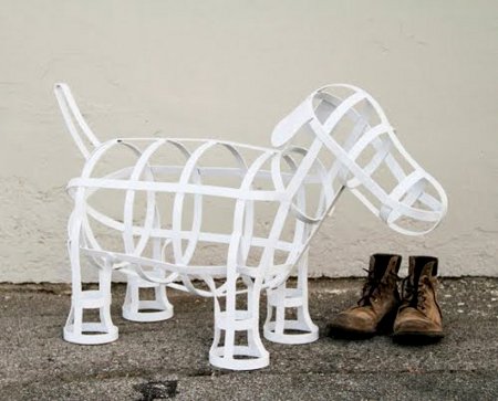 Quand la sculpture devient utile, ou l’utile s’expose en sculpture… Imaginé par Elda Bellone en provenance d’Italie, le I-Chien réalisé en édition limitée reprend les courbes du chien le tout réalisé à partir de pièces métalliques blanches.