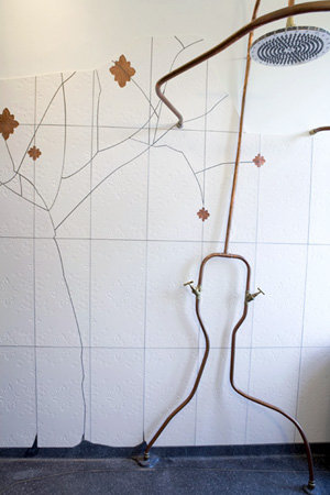C’est une salle de bain très » végétale » et la forme des robinets fait penser à des branches, des arbres … L’eau n’est appararemment pas la seule source d’inspiration !