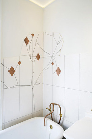 - Casser des carreaux de céramique (sol ou murs) et transformer les fissures en motifs graphiques.