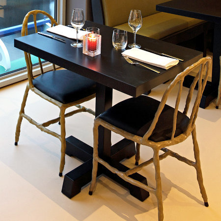 Ici, l’originalité et l’identité du restaurant ne viennent donc pas de sa configuration spatiale ou de son organisation, mais bel et bien des objets qui y ont été placés, même si ceux-ci sont bien évidemment mis en valeur par un choix de couleurs appropriés (murs très foncés, sol clair).