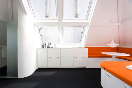 Destiné aux entreprises ou aux particuliers, ce gîte offre une alternative originale au séjour traditionnel en hôtel. Il a été aménagé par l’agence Queeste Architecten.