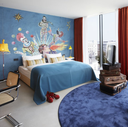 Faisant écho à l’univers du cirque du début du 20e siècle, cet hôtel combine habilement des meubles anciens, des antiquités, des souvenirs évoquant l’art du cirque, et des meubles plus contemporains et autres objets design.
