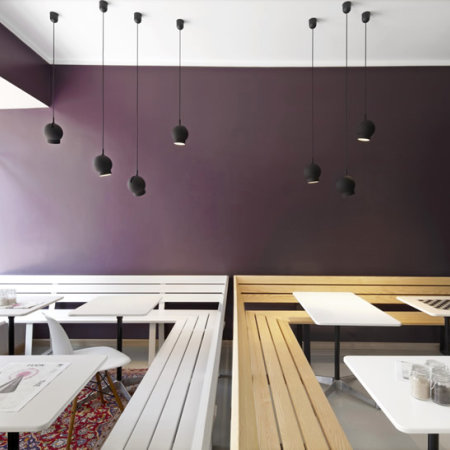 Située dans le quartier du Westend à Munich, la pâtisserie Kubitscheck a été décorée et réaménagée par l’agence de design Designliga. Au menu: un savant mélange de couleurs, et une utilisation optimale de quelques meubles simples pour organiser l’espace et lui offrir une identité bien particulière.