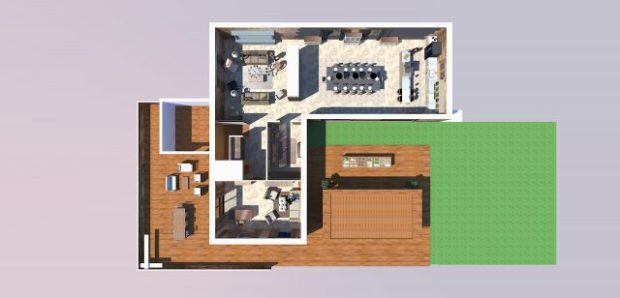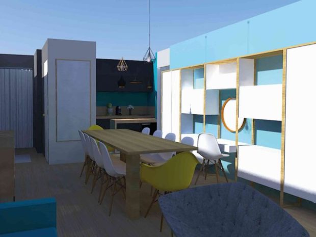 Réflexion sur la réorganisation complète d’un rez-de-chaussée : distribution des pièces, cloisonnement et décoration intérieure. L’objectif est de créer plusieurs espaces de vie telle qu’une grand pièce conviviale dédiée à la cuisine, aux repas et aux réceptions, qui s’ouvre largement sur le jardin, d’une terrasse, d’une salle à manger, d’un salon, et d’une proposition d’aménagement pour un futur bureau, avec accès direct sur l’extérieur, pouvant si besoin être transformé en chambre d’amis.