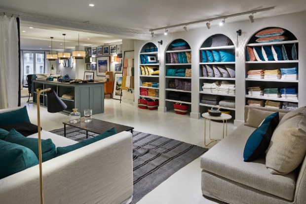 La boutique se dévoile telle un véritable intérieur et le visiteur déambule de pièces en pièces. Cuisine, salle à manger, salon, bibliothèque, jusqu’à la chambre et dans le dressing, chaque pièce offrent différents tableaux, instantanés d’intérieurs où la patte de Sarah Lavoine transparaît.