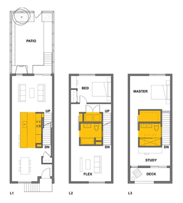 Durant les 50 dernières années, la ville de la Philadelphie a connu un important déclin de sa population. Cette tendance s’inverse actuellement et les constructions connaissent un boom qui limitent le nombre de terrains disponibles. Les équipes d’Interface Studio Architects ont donc du imaginer une habitation calée entre deux autres maisons.