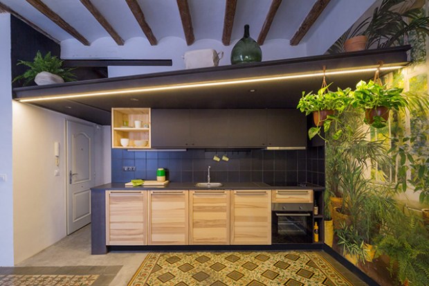Situé dans le quartier gothique de la ville, l’appartement « Fin of the Roc » est le cinquième projet de rénovation effectué par l’agence d’architecture dans le même immeuble.