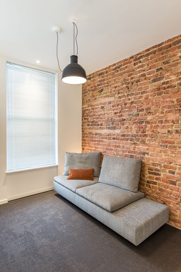 - Dans la décoration et notamment les projets de rénovation, il est souvent bon de proposer une alternance, ici le mur de briques d’origine qui s’invite aux milieux des murs blancs. Cela peut bien évidemment passer par un mur de couleur, ou un revêtement différent du reste. Cette astuce permet de rythmer un espace, d’en briser la monotonie.