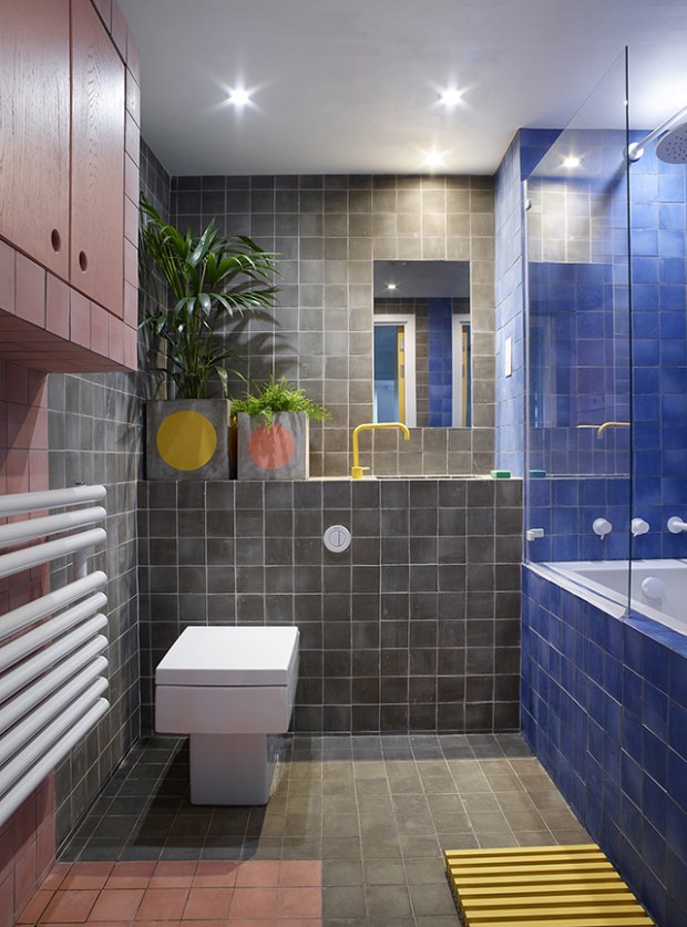Ici, c’est surtout dans l’utilisation des contrastes et des matériaux expérimentaux que ce projet de rénovation nous séduit. Pour créer cet intérieur facetté et coloré, il a fallut utiliser pas moins de 2000 carreaux (notamment dans la cuisine et la salle de bain) de ciments colorés ! Un travail titanesque où l’architecte d’intérieur s’est attelée à un véritable travail pictural.
