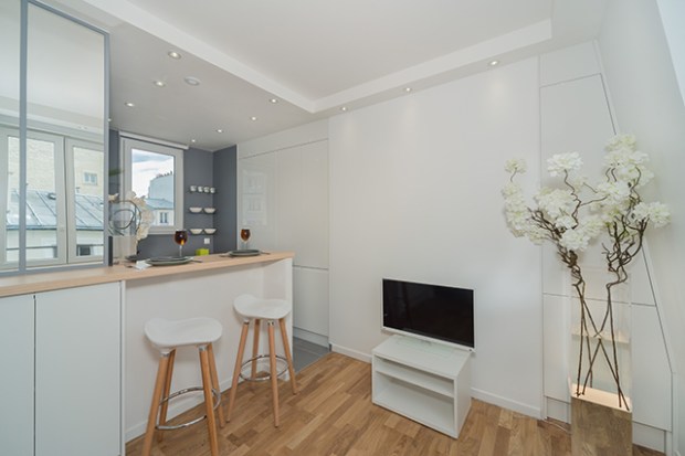 Sur une surface de 21m², réaliser un aménagement et une décoration pour l’espace totalement fonctionnel n’est pas chose aisée, et pourtant, en travaillant sur l’apport de lumière et avec de nombreuses bonnes idées, l’architecte David Bitton a parfaitement réussi son pari.
