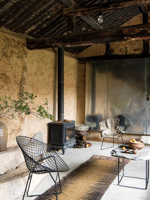 - A ce « fond » très rustique, ont été ajoutées des pièces très contemporaine pour un contraste parfait entre le passé et la modernité. Une ambiance très chaleureuse qu’il est facile de reproduire dans vos projets en jouant sur les anachronismes.