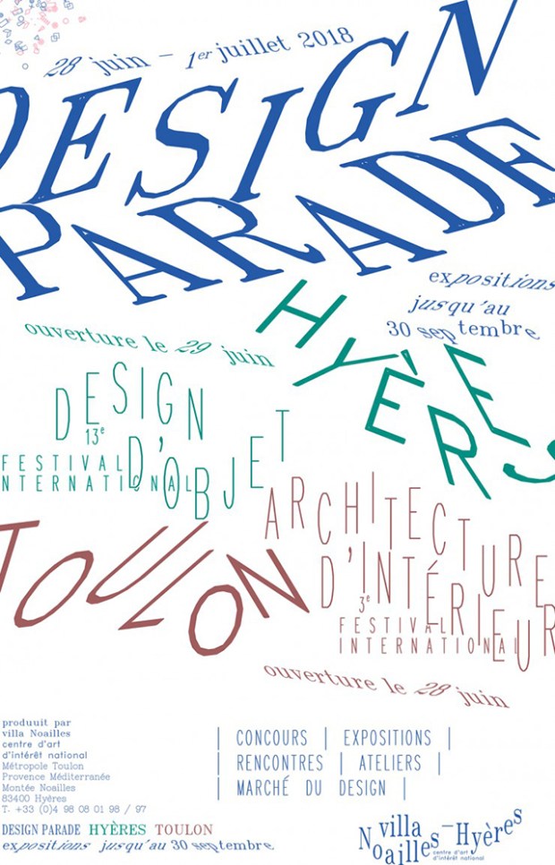 A propos de la Design Parade 2018 : « Le Festival réunit expositions et rencontres. À travers cette plateforme, la villa Noailles espère accroître son aide à la jeune création et faire se rencontrer, échanger et permettre une meilleure connaissance des créateurs par les professionnels, le public et les journalistes. Le Festival comprend deux volets : un festival de design à Hyères et un festival d’architecture d’intérieur à Toulon« .