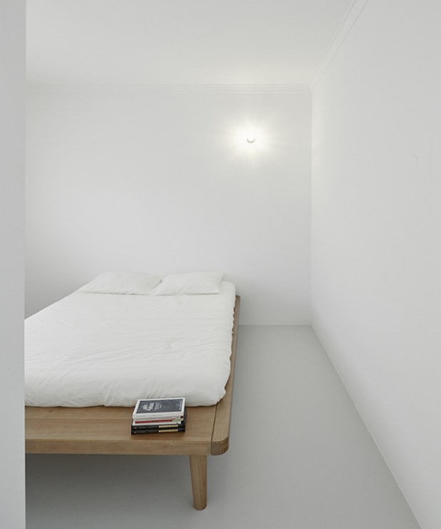 - Le sol gris qui vient contraster subtilement avec les murs blancs.