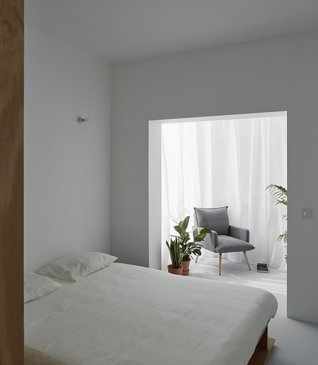 La seconde chose qui frappe lorsque l’on découvre cet appartement est le choix de la palette chromatique. minimale et cohérente, puisque le blanc domine totalement l’espace. Maintenant que les architectes se sont débarrassés des cloisons inutiles, le choix du blanc apporte énormément de lumière dans l’espace.