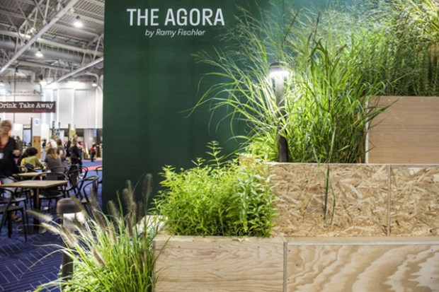 Cet espace est aussi étonnant qu’élégant. Lieu de vie multiple, il invite le visiteur à travailler, se reposer, échanger, le tout au sein d’un même espace qui joue parfaitement avec les trois dimensions. Concrètement, The Agora est une succession de gradins réalisée uniquement en bois. Espace de conférences, on découvre au sommet des tables creusées à même le socle. Des nombreux végétaux viennent compléter cette vaste structure de bois qui recèle des nombreuses surprises, de nombreux espaces dans l’espace. La découvrir au beau milieu du salon offre une bonne dose végétale et naturelle au sein d’un hall d’exposition fourmillant de vie, une sorte de cabane à l’abri de l’agitation ambiante.