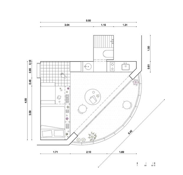 En route pour Bueno Aires en Argentine pour découvrir un projet qui nous a particulièrement séduit. Ce studio de seulement 18m² est un modèle d’aménagement où la lumière devient le principal élément de décoration. Ce projet est né du fractionnement d’une habitation des années 50 en plusieurs appartements. Celui qui nous intéresse se situe au premier étage à l’angle de la rue, et ce sont les architectes et architectes d’intérieur d’IR Arquitectura qui se sont chargés du projet. L’accent a été mis sur l’ouverture sur l’extérieur et le travail avec un plan triangulaire. Pour cela, les architectes ont créé un balcon circulaire revêtu d’une délicate structure perforée blanche, ressemblant à une vague. Ce que nous avons aimé et nos conseils déco juste après la visite en images :