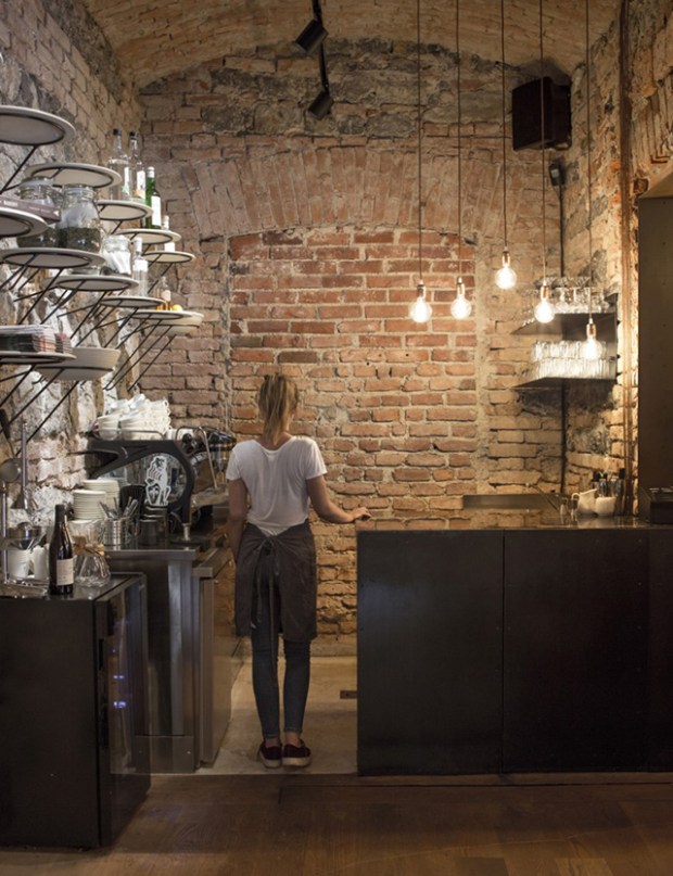 Les architectes en charge de cette rénovation racontent qu’au lieu d’un cahier des charges classiques, il ont reçu le menu complet qui serait servi dans le futur bistro. Le concept de la décoration de ce restaurant est donc directement né des produits qui y seraient servis. Les plats misent essentiellement sur les produits bruts, et c’est justement ce qu’ont cherché à mettre en place les architectes dans la conception du lieu. Un espace brut et sans fard qui mise sur l’authenticité en dévoilant les murs de briques et l’architecture du bâtiment datant du XIXème siècle.