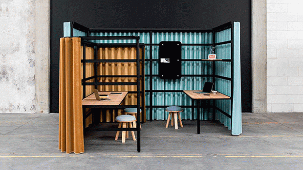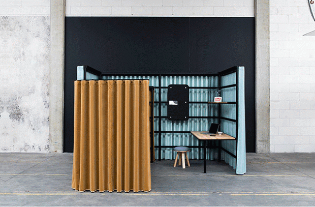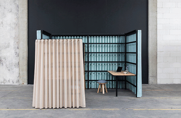 Le projet se matérialise par des structures composées de fines tiges métalliques et fermées par des tissus de la marque danoise Kvadrat. Disponibles dans une immense gamme de coloris, il est par ailleurs possible de choisir l’opacité du tissu, selon le degré d’intimité désiré sur son lieu de travail. La structure modulaire peut en outre être équipée d’une sélection de meubles supplémentaires et d’accessoires comme par exemple des tablettes, portes manteaux, espaces de rangement…