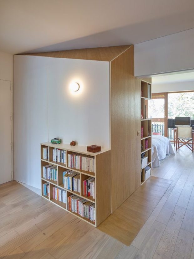 L’agence H2O Architectes a récemment livré l’aménagement d’un appartement à Sceaux. Un projet très intéressant où des volumes de bois paraissent glissés dans l’espace pour accueillir les différentes fonctions telles que cuisine, rangement, salle de bain et chambre d’amis. Une intervention très inventive qui permet de renforcer le caractère traversant et doublement orienté de l’appartement. Ce que nous avons aimé et nos conseils déco juste après la visite en images :
