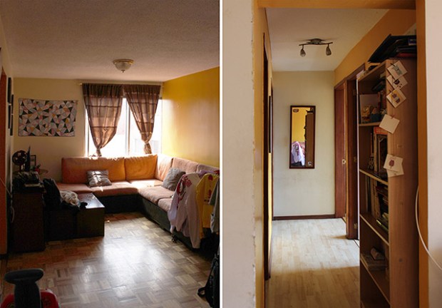 En premier lieu, les architectes ont du repenser tout le plan de l’appartement. Comme nous pouvons le constater dans la première photo (Avant), il été indispensable de ré-imaginer l’espace et ses circulations. L’une des trois chambres a été supprimée pour offrir plus d’espaces partagés aux étudiants. Afin de leur permettre d’accueillir leurs amis ou de la famille pour la nuit, c’est un lit dissimulé dans l’un des placards du salon qui a été installé.