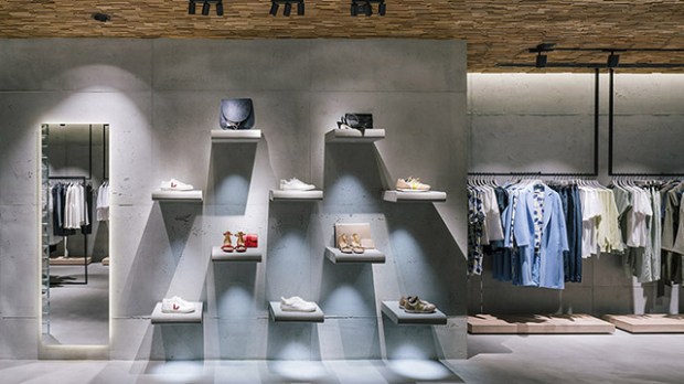 - Idée intéressante lorsque l’on s’intéresse à la décoration d’une boutique de prêt à porter, créer la surprise ! Ici, la végétalisation aux pieds de mannequins, là les présentoirs directement intégrés à la paroi de béton. Beaucoup de petits détails qui font la différence !