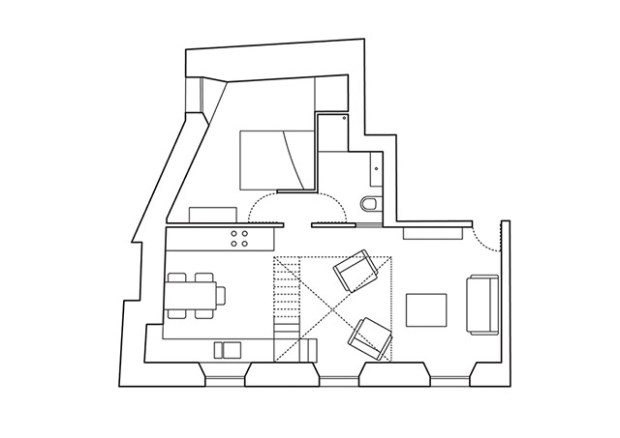 Dans la mesure du possible, les architectes conserver ou restaurer les caractéristiques d’origine, le parquet de chêne a été simplement rénové, tout comme les portes et les lambris d’époque qui ont été préservés. Pour donner une touche contemporaine à la décoration, les architectes ont misé sur l’application d’une palette de couleurs neutres, le blanc notamment qui permet d’obtenir une esthétique cohérente et minimale. Avec les nombreuses surfaces en contreplaqué qui se détachent de ce fond blanc, les architectes ont poussé leur idée en insérant d’autres détails utilisant ce matériau comme les plans de travail de la cuisine, les marches des escaliers et les étagères. Très lumineux, l’appartement accueille une sélection de pièces de mobilier très hétéroclite qui apporte couleurs et dynamisme à l’ensemble.