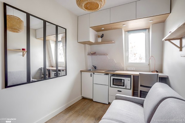 Trouver un logement à Paris est de plus en plus difficile. Avec le prix des loyers en constante augmentation depuis des années, nombreux sont ceux qui se tournent vers de petites surfaces. L’agence d’architecture d’intérieur Créa3, fondée par François Ernoult, vient de réaliser la transformation d’une chambre de bonne de 10m², en petit studio fonctionnel et tout équipé. Un projet ou chaque centimètre carré compte et où les petites astuces déco pour gagner de l’espace foisonnent. Ce que nous avons aimé et nos conseils déco juste après la visite en images :