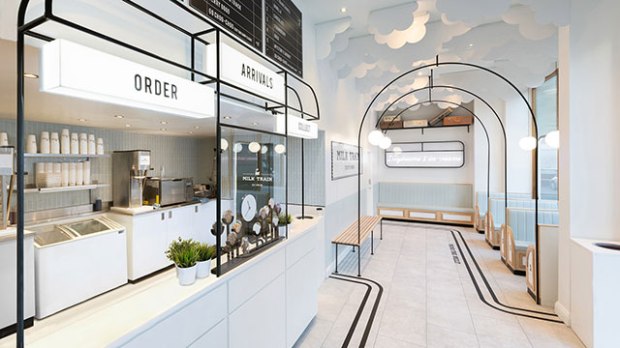 Les glaciers rivalisent d’originalité en matière de décoration avec des concepts bien arrêtés et qui traduisent tous une certaine idée de fraîcheur dans l’aménagement et le choix du mobilier. Aujourd’hui, nous vous emmenons à Londres et plus précisément à Covent Garden pour découvrir « The Milk Train« . Un glacier à la décoration inspirée des gares londoniennes, avec ses arches et sa faïence blanche, des espaces de dégustation pensées comme de petits compartiments. Un espace très immersif, qui de l’aveu de ses concepteurs, l’agence de design global et de décoration d’intérieur FormRoom a été pensé pour Instagram ! Ce que nous avons aimé et nos conseils déco juste après la visite en images :
