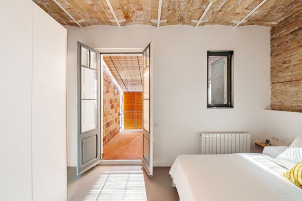 Dans toute la maison, les murs en plâtre blanc sont combinés à la maçonnerie d’origine laissée apparente. Certaines pièces sont également dotées de voûtes en brique qui ont été découvertes lors de la rénovation. Elles sont connues localement sous le nom de « volta catalana » ce qui signifie « arc catalan ». Plutôt que les détruire, les architectes ont au contraire cherché à les mettre en valeur pour les intégrer au projet.