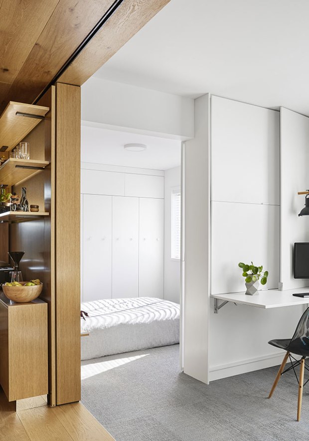 Chez conseils déco nous aimons beaucoup les projets pour lesquels l’architecte est aussi le client. C’est bien souvent l’assurance de voir des projets particulièrement inventifs et dans lesquels la créativité n’est pas bridée. Aujourd’hui, nous vous emmenons à Richmond en Australie, où l’architecte Jack Chen a aménagé son petit appartement de 35m² avec de très nombreuses idées géniales pour gagner de l’espace. Au programme, des meubles polyvalents, des rangements cachés et des éléments encastrés qui disparaissent totalement. Ce que nous avons aimé et nos conseils déco juste après la visite en images :