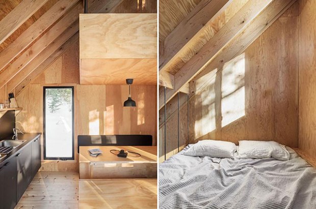 Dans ce parc classé, les architectes ont cherché avant tout à livrer une réinterprétation du style des cabanes en Amérique du Nord dans les années 1950. Un objet simple, presque signalétique, qui offre des espaces fonctionnels et capable d’accueillir deux à quatre personnes. Les espaces intérieurs sont sobres et baignés de lumière naturelle, comme si la nature devenait le principal élément de décoration.