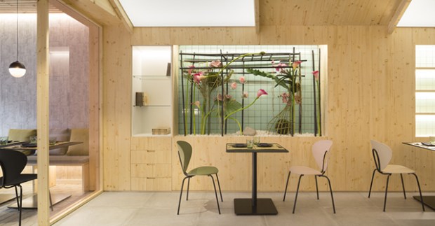 Créer des projets de décoration aux influences multiples n’est jamais aisé. Pour Kamon, un restaurant japonais et méditerranéen situé à Valence, en Espagne, les architectes ont multiplié les clins d’œil avec grand talent. La salle du restaurant s’inspire de l’esthétique architecturale du Japon en utilisant de nombreux détails venu directement de la culture traditionnelle japonaise. Beaucoup d’élément organiques, qu’il s’agisse de la véritable végétation ou de l’immense peinture murale aux motifs floraux qui vient créer un point focal très intéressant au centre de l’espace.