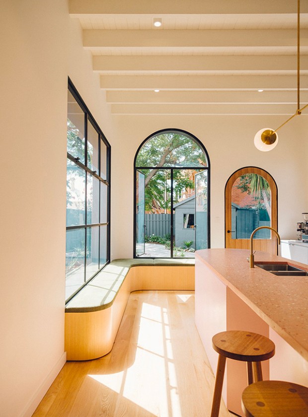 Le studio d’architecture et d’architecture d’intérieur australien Sans Arc a récemment réalisé une extension pour une maison dans la ville de Torrensville. Essentiellement réalisé en gypse, ce nouveau volume se déploie en utilisant de nombreuses arches pour rappeler le style architecturale Art-Déco. Un espace coloré et joyeux où la lumière tient un rôle prépondérant pour exposer la large collection d’objets en céramique et en verre de ses propriétaires. Ce que nous avons aimé et nos conseils déco juste après la visite en images :
