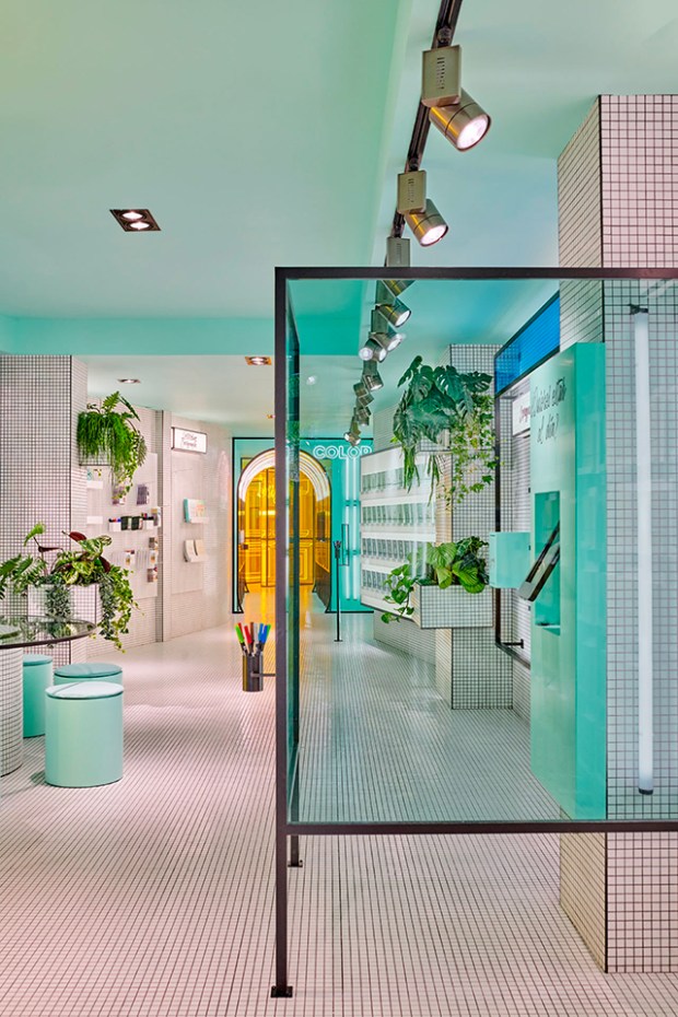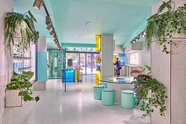 C’est cette longévité qui a été la source d’inspiration du duo de designers, qui a souhaité créer un espace entre passé et modernité, plongeant le visiteur dans un environnement intrigant. En utilisant des couleurs vives, des néons et de panneaux d’acrylique reposant sur des carreaux blancs, Masquespacio créé un univers rétrofuturiste des plus réussi.