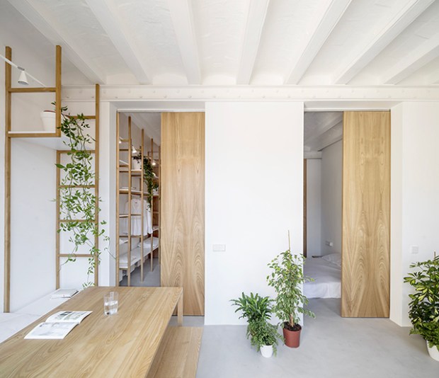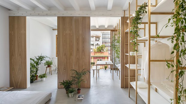 Pour bien reprendre l’année sur Conseils Déco, nous vous emmenons aujourd’hui à Barcelone pour découvrir ce projet de réhabilitation de l’architecte espagnol Román Izquierdo Bouldstridge. Une intervention d’architecture intérieur et de décoration qui consiste à transformer un appartement datant de 1880 en deux lofts distincts. A travers une succession de pièces qui relient la rue à la cour par un système de portes coulissantes en bois, l’architecte développe une décoration très verdoyante et naturelle qui s’inspire de la maison traditionnelle japonaise. Ce que nous avons aimé et nos conseils déco juste après la visite en images :