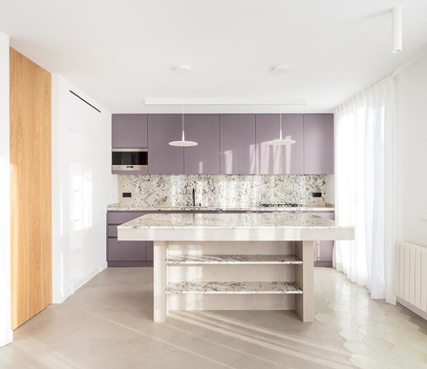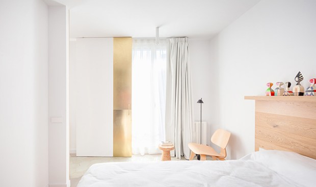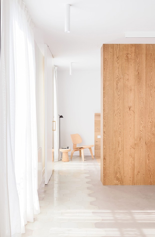 Direction Barcelone pour découvrir le travail de réhabilitation et de décoration d’intérieur mené par l’architecte espagnol Raúl Sánchez. Dans un appartement de 110 m² situé à Barcelone, l’architecte a choisi de remplacer toutes les cloisons intérieurs par un long couloir bardé de chêne et dictant les circulations internes. Il abrite la chambre à coucher, le dressing et le bureau, ainsi que de généreuses zones de rangement. De l’autre côté, se trouvent les trois espaces fonctionnels que sont le salon, la cuisine et la salle à manger. Par un superbe jeu de textures et de matières, l’architecte parvient à mêler le bois de chêne et le béton en leur ajoutant par touches du granit, du cuivre, du laiton et du verre. Un travail subtil et audacieux qui est très agréable à l’œil. Ce que nous avons aimé et nos conseils déco juste après la visite en images :