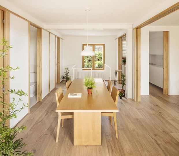 Direction la Costa Brava en Espagne pour découvrir cette maison rénovée par l’architecte Román Izquierdo Bouldstridge. Une rénovation d’ampleur, puisque cette réalisation a été rendue possible après un énorme travail de terrassement. En effet, le sous-sol de la maison, jusqu’ici totalement encaissé a été dévoilé, permettant de créer de nouvelles pièces lumineuses et d’ajouter virtuellement un étage à cette maison de plain-pied. Cette énorme intervention a donné l’opportunité de réinterpréter la maison dans un style traditionnel japonais, où la nature, le bois et la lumière s’harmonisent dans une atmosphère unique. Ce que nous avons aimé et nos conseils déco juste après la visite en images :