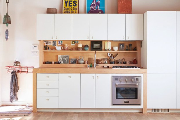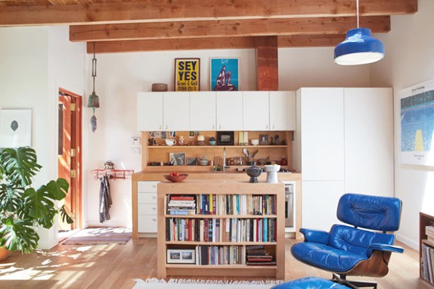 Avec son grand puits de lumière et ses portes vitrées coulissantes donnant sur un jardin privé, cet appartement tente de gomme la frontière entre le dedans et le dehors. Une bonne idée lorsque l’on aménage ou rénove un petit espace pour augmenter la perception de l’espace. Un gros travail autour de la récupération de matériaux a aussi été effectué ici. Le séquoia utilisé pour barder le plafond et comme revêtement de sol provient de la structure originale du bâtiment. Il apporte beaucoup de chaleur à cette décoration, en créant un cadre qui agit comme une toile de fond à l’ensemble du projet de déco.