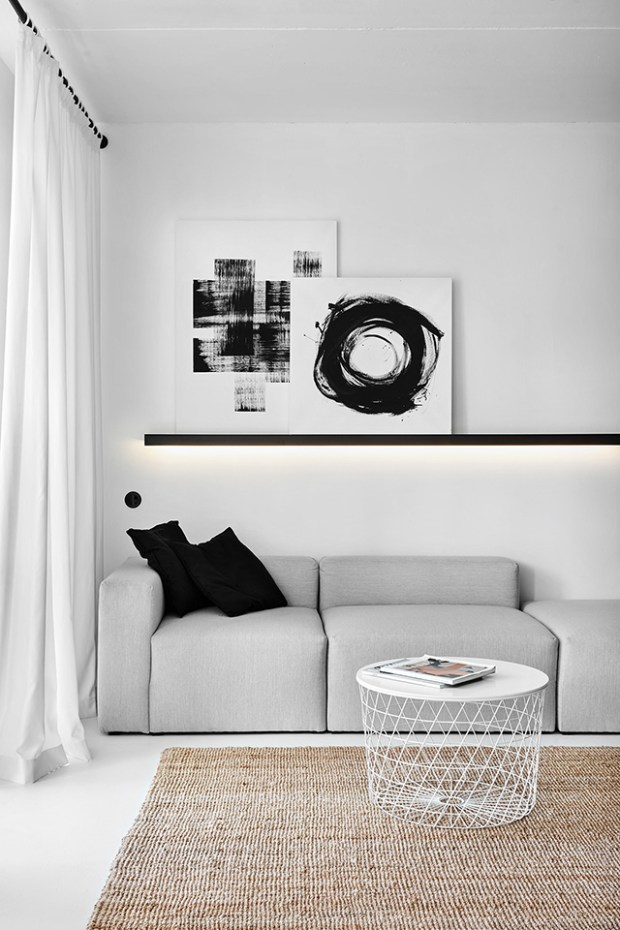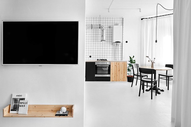 Line Design Studio a créé un projet qui résume parfaitement ce que signifie une décoration minimalisme dans ce petit appartement contemporain. On trouve ici un mélange parfait entre fonctionnalité et optimisation. Ici, chaque pièce se lit comme un espace ne contenant que le nécessaire, sans pour autant sacrifier le style. Dans tout l’appartement, on trouve une variété éclectique d’aménagements, des pièces sur mesure aux meubles préfabriqués, des œuvres d’art sur le mur au bureau entièrement équipé.