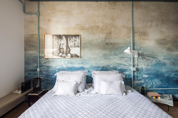- Plutôt que de dissimuler la tuyauterie d’un logement, pourquoi ne pas la peindre en couleur pour créer des trames ?