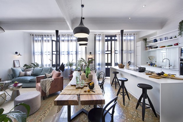 Cet appartement éclectique mêle ici des sols en mosaïque de récupération, des pièces de designers contemporains, des poutres en bois et une voûte catalane traditionnelle, du mobilier rustique… Autant dire que la cohabitation de tous ses éléments ne peut s’opérer que de manière parfaitement réfléchie.