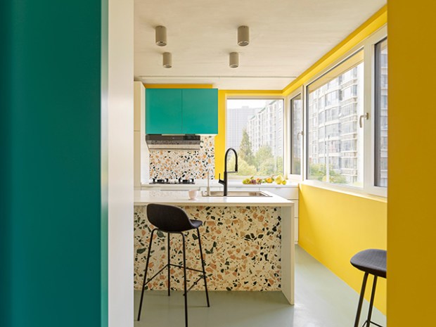 Imaginer une décoration qui fait la part belle au jaune n’est pas un exercice facile. Pourtant, les architectes et architectes d’intérieurs du MDDM Studio ont réussi ce pari avec brio dans cet appartement très lumineux à la décoration pétillante de Pékin. La maison P, s’invite aux deux derniers étages d’un immeuble de la ville et profite ainsi d’un apport lumineux très important mis en valeur par une décoration imaginative et de grands espaces à vivre ouverts et connectés. Sur le plan du mobilier, on adore ces touches très sobres et contemporaines qui viennent contrebalancer le jaune omniprésent et cette utilisation massive du terrazzo dans toutes les pièces de cet appartement. Ce que nous avons aimé et nos conseils déco juste après la visite en images :