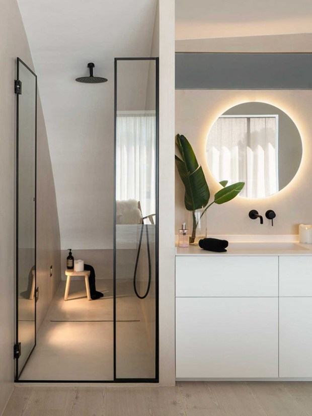 Tout d’abord, l’architecte d’intérieur a souhaité partir d’une page blanche pour laisser parler sa créativité. Le blanc s’est donc imposé comme couleur principale, un choix qui permettait de remplir un des objectifs premiers du projet : focaliser l’attention des habitants de la maison sur la nature environnante. Ensuite, la professionnelle de la décoration a dessiné un plan où chaque étage possède sa propre fonction.