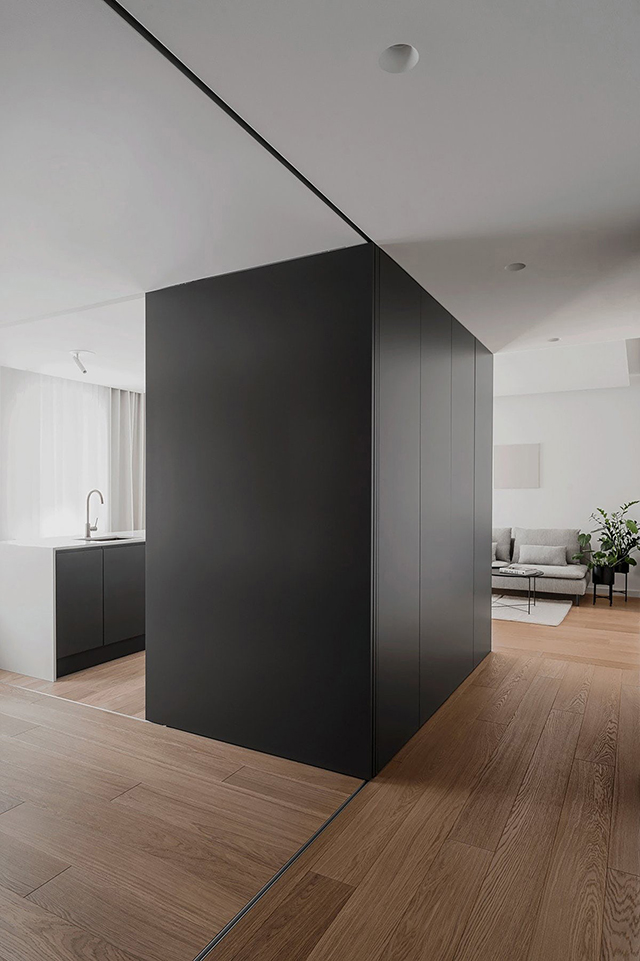 En décoration, le minimalisme est souvent associé à une déco épurée. Un élément que les jeunes décorateurs oublient souvent, c’est qu’il n’y a rien de plus minimaliste qu’un objet qui associe plusieurs fonctions. En effet, plus un objet est polyvalent, moins il sera nécessaire d’en rajouter ! Dans ce projet d’appartement rénové par le studio d’architecture et de design global polonais Acos, cette idée prend tout son sens avec un noyau central qui articule toutes les fonctions et circulations de cet espace totalement ouvert.