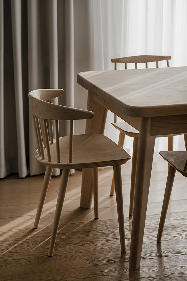 Toutes les chaises de toute la maison sont pareillées. De cette manière, elles peuvent être rassemblées autour de la table à manger ou séparées et utilisées selon les besoins.