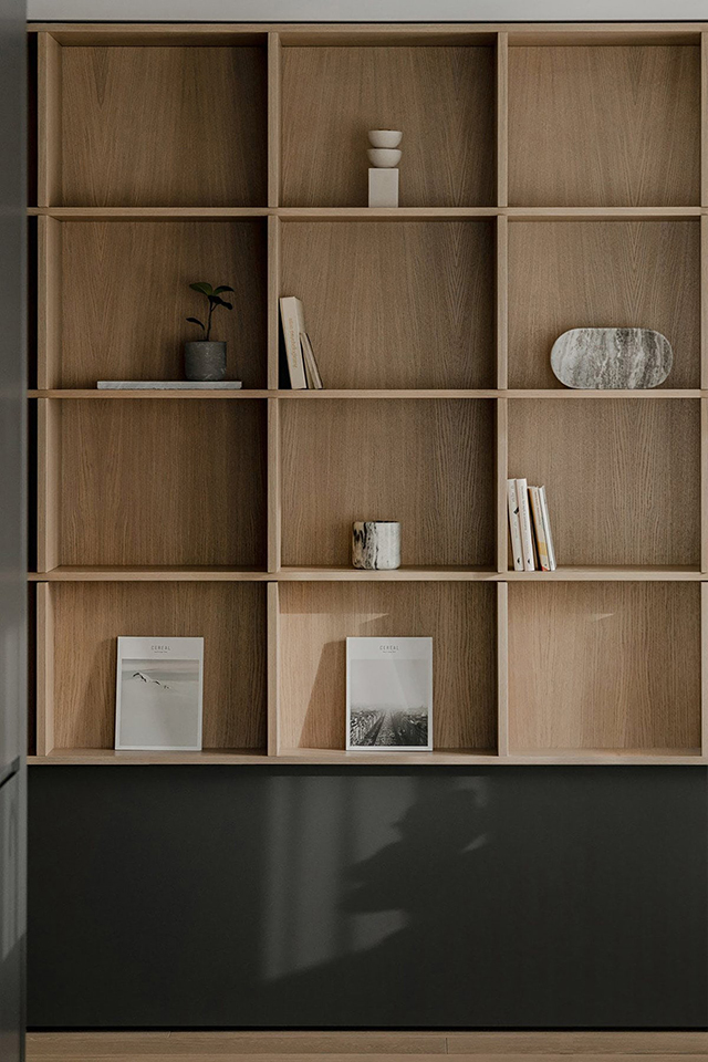 De très grandes étagères peuvent accueillir tout ce qui a besoin d’être mis en valeur ou conservé à portée de main : œuvres d’art, plantes, objets de décoration ou livres.