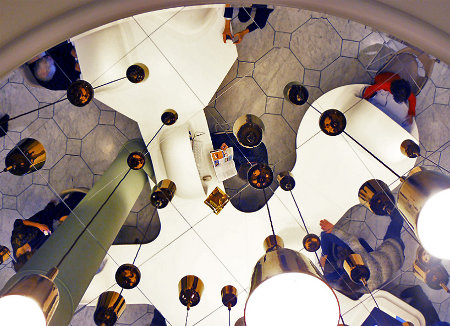 L’architecte japonais Yoshimasa Tsutsumi a récemment conçu l’aménagement intérieur d’une salle de danse située à Pékin, en Chine. Son concept, très simple et pourtant visuellement étonnant, a consisté à placer de nombreux miroirs sur lesquels se répand une trame de points blancs de différentes tailles, et dont l’accumulation génère un effet de brouillard.