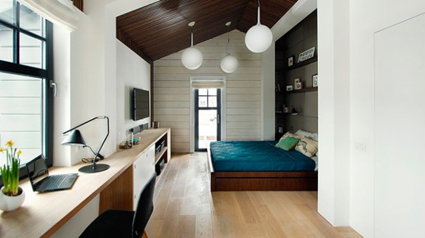 Les architectes et architectes d’intérieur de ZE | Workroom Studio ont réussi la prouesse de créer trois espaces distincts et parfaitement fonctionnels dans une chambre à coucher. Avec une belle utilisation de la surface, des idées décoration originales et des matériaux sobres et élégants, ils intègrent dans la pièces un lit avec téléviseur, un grand bureau niché sous une fenêtre et un dressing placé derrière une verrière. Ce que nous avons aimé et nos conseils déco juste après la visite en images :