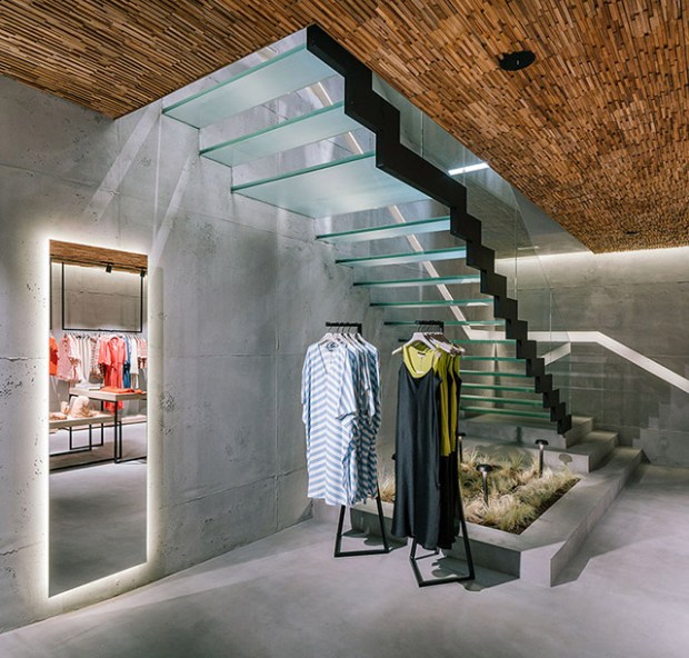 Une décoration de boutique qui mêle matériaux industriels et récup’